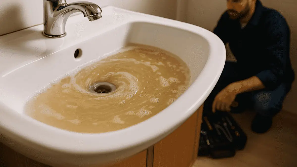 Bathroom drains clog slowly over time. Hair, soap residue, and mineral deposits combine into a sticky blockage that gets worse month after month.